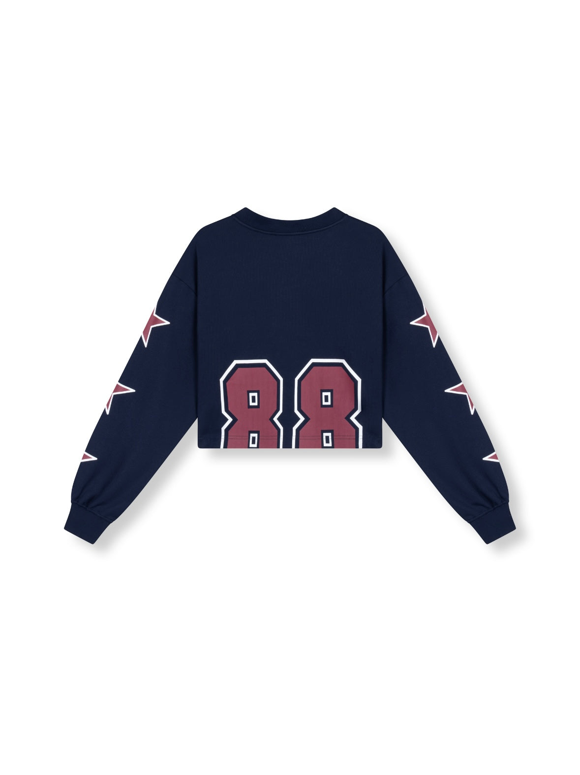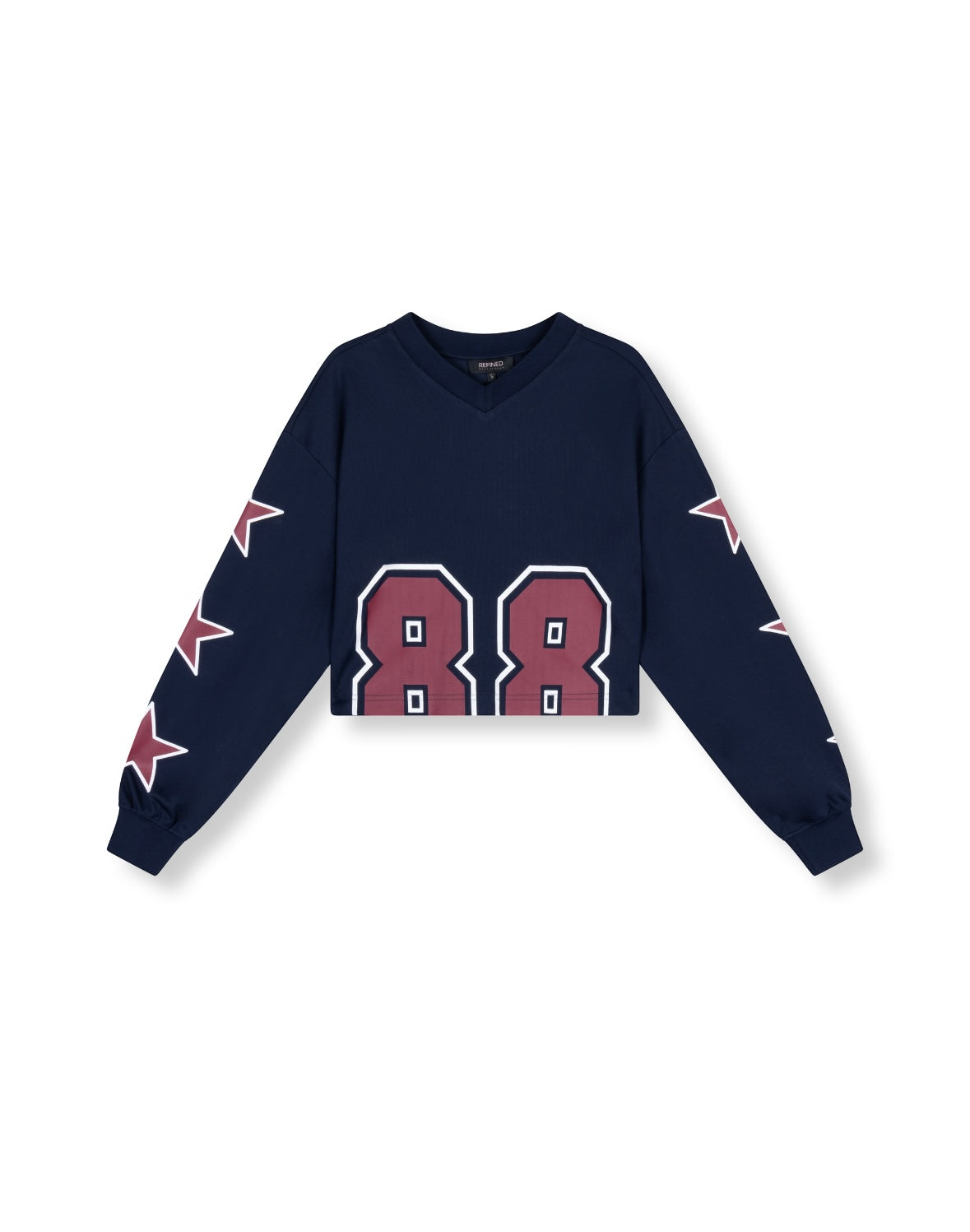 Leuke Jersey in Navy kleur, valt iets ruimer.